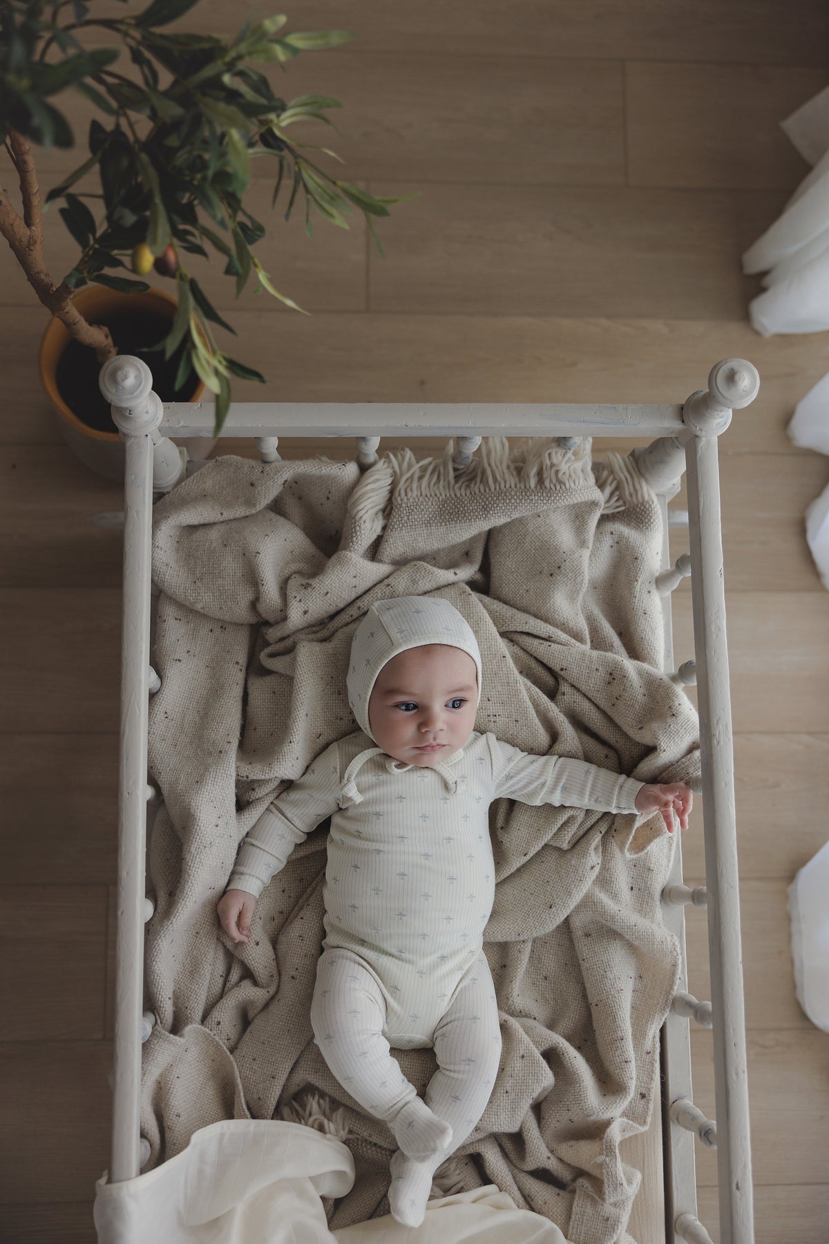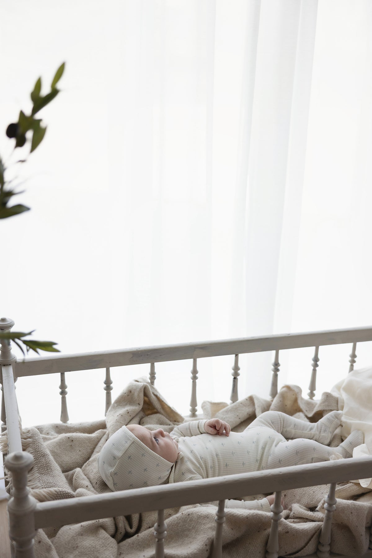 Lilette Striped Planes Cream/Blue Cotton Footie