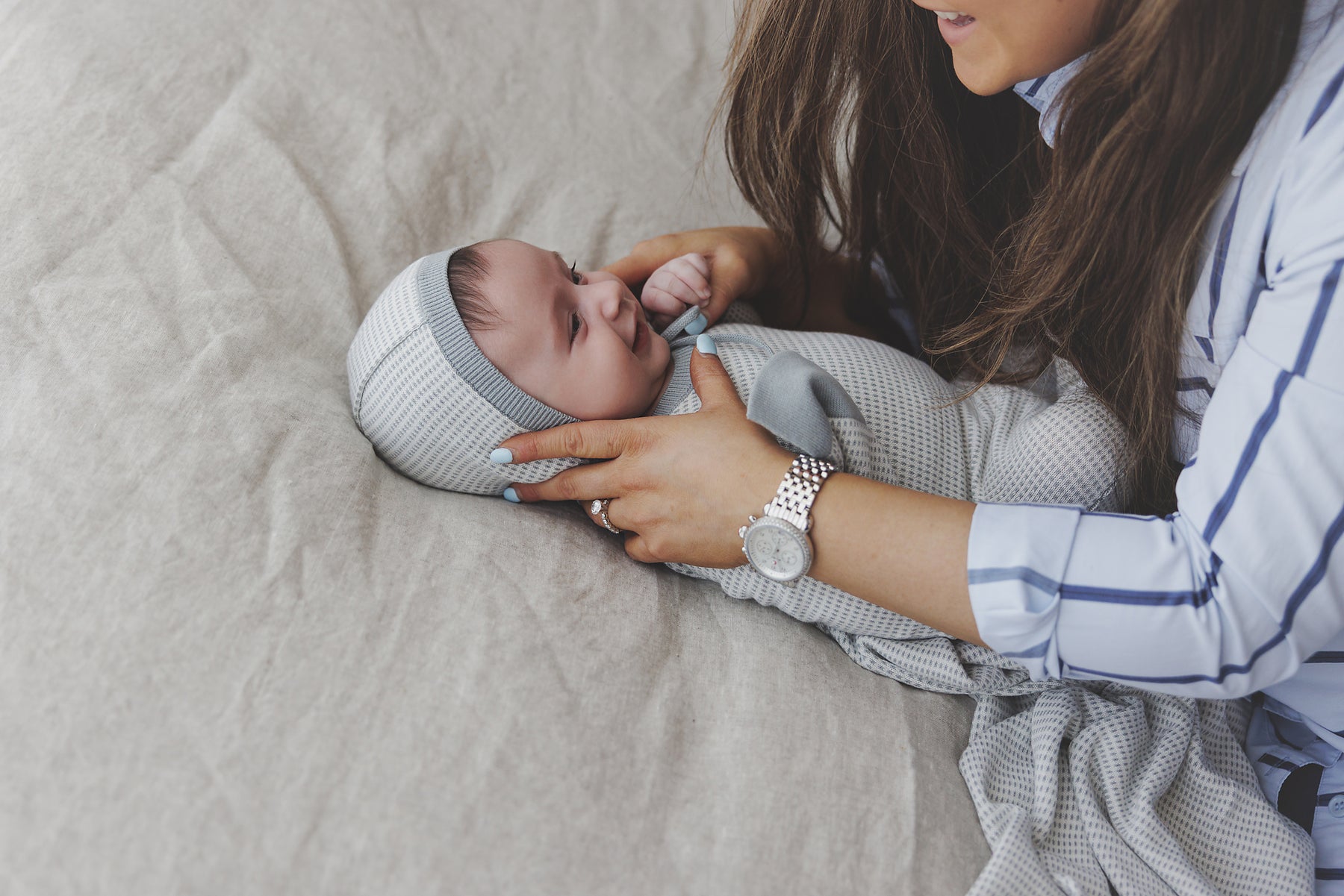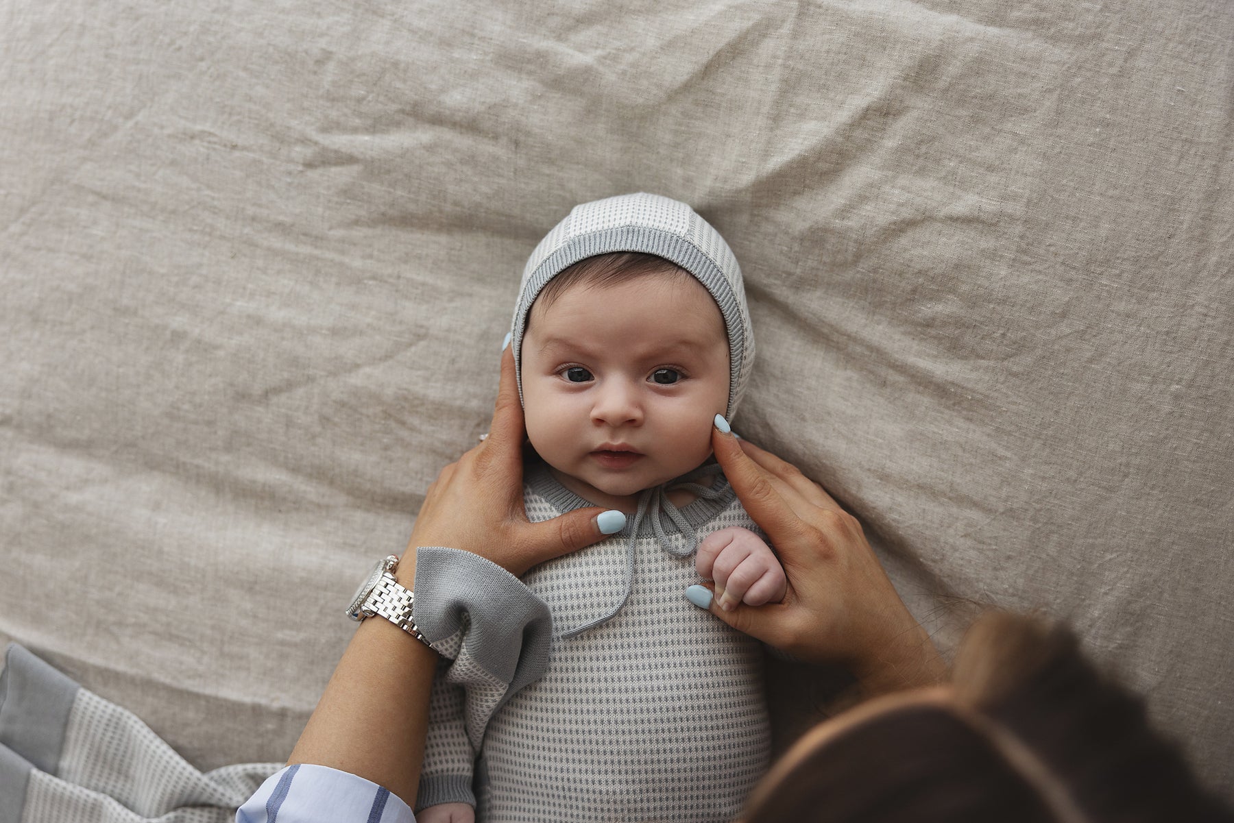 Lilette Two Tone Light Blue Knit Footie with Bonnet