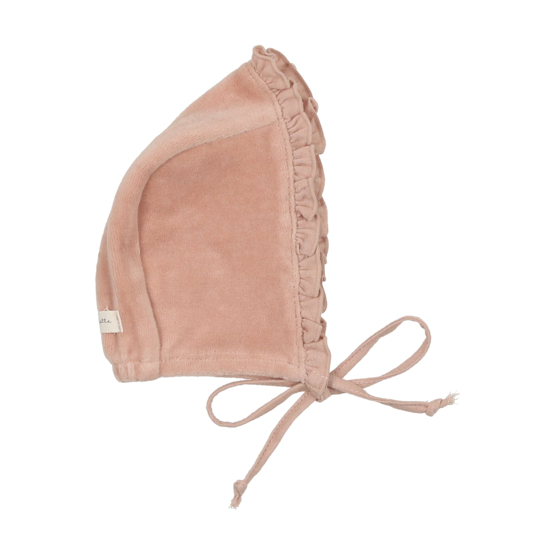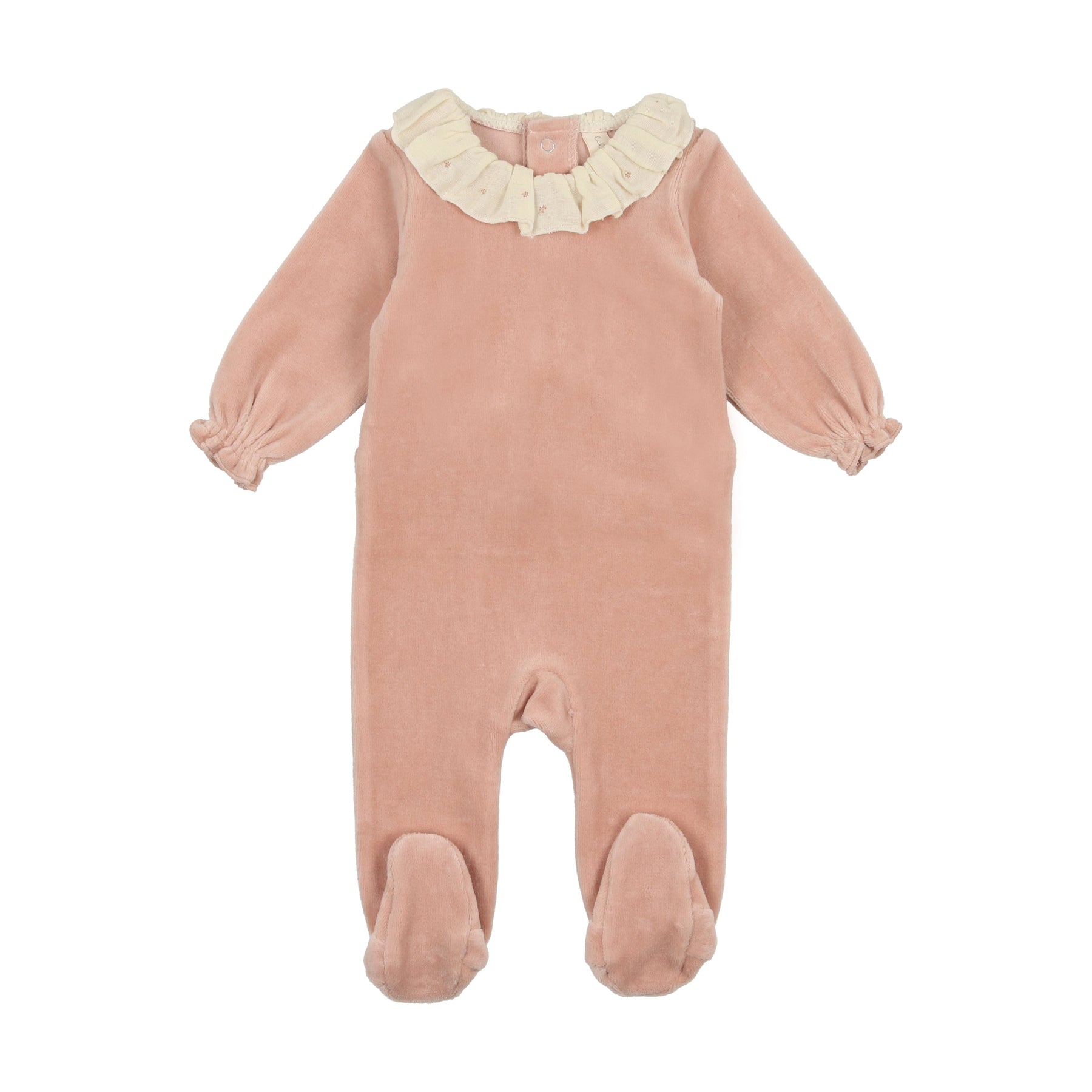 Lilette Embroidered Ruffle Collar Dusty Pink Velour Footie with Bonnet